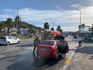 Muğla'nın Bodrum ilçesinde seyir halindeki otomobil bir anda alev aldı. İtfaiyenin hızlı müdahalesiyle yangın kısa sürede söndürüldü.
