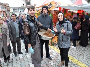 Yaklaşık 500 kilogram çiğ köftenin yapıldığı Gaziantep yöresi ürünler ive kültürel etkinliklerinin tanıtımı Simav'da büyük ilgi gördü.