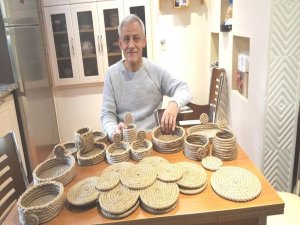 Öğretmen Ali Akar, halattan dekorasyon malzemeleri yapmaya internetteki konuyla ilgili videoları izleyerek başladığını söyledi.