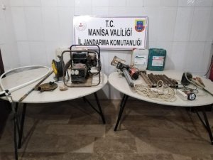 Manisa İl Jandarma Komutanlığı ekipleri, uzun süredir yaptıkları istihbarat çalışması sonrası, Salihli ilçesi Pazarköy Mahallesi Bintepeler mevkii 1'inci Derece Sit Alanı içerisinde kazı yapan Y.Ö. (30), T.Y. (38) ve M.H.K. (40) isimli şahısları suçüstü yakaladı. Olay yerinde ve alanda yapılan kontrollerde; 1 adet jeneratör, 1 adet matkap, 1 adet levye, 1 adet balyoz, 1 adet su tahliye cihazı, 2 adet el feneri, 1 adet çekiç, 1 adet kerpeten, 1 adet boru anahtarı, 1 adet 10 metrelik üçlü uzatma kablosu, 1 adet 30 metrelik jeneratör kablosu ve 1 adet kablo makarası ele geçirildi. Gözaltına alınan şüpheliler jandarmadaki işlemlerinin ardından adliyeye sevk edildi.