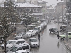 Afyonkarahisar'ın Şuhut ilçesinde sabaha doğru başlayan kar yağışı aralıklarla etkili olmaya devam ediyor.