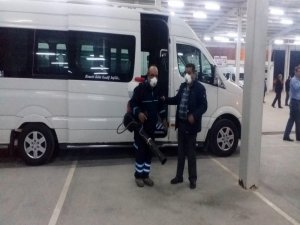 Dezenfekte işleminde dolmuş şoförleri de ekiplere yardımcı olarak destek verdi.