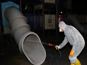 Turgutlu Belediyesi Temizlik İşleri Müdürlüğü ekipleri tarafından vatandaşların yoğun olarak bulunduğu çocuk oyun alanları, parklar, camiler, okullar, spor tesisleri gibi alanlarda koronavirüs ve diğer virüslere karşı perşembe gecesi 00.30'da dezenfekte çalışmaları başlatıldı. Çalışmaları yerinde inceleyen Turgutlu Belediye Başkanı Çetin Akın ekiplere yardımcı oldu.