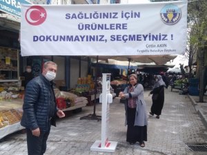 Turgutlu Belediyesi, korona virüs (Covid-19) ile mücadele kapsamında ilçedeki pazar yerlerine el dezenfektanı aparatları yerleştirmeye başladı.