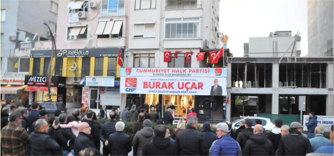 Aliağa Cumhuriyet Halk Partisi Belediye başkan aday adayı İnşaat Yüksek Mühendisi Burak Uçar aday adaylığını açıkladı. Parti ilçe binası önünde partililere ve vatandaşlara hitab eden Uçar neden aday adayı olduğunu anlattı.