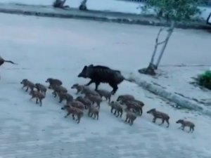 Türkiye'nin dünyaca ünlü tatil beldesi Marmaris Armutalan Mahallesinin sokak ve caddelerinde turistler yerine domuzlar geziyor.