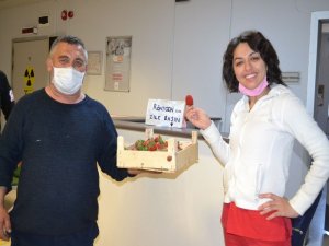 Manisa'nın Kırkağaç ilçesinde çilek üreticiliği yapan Mehmet Eğrioğlu, özenle yetiştirdiği çileklerini korona virüs salgınıyla mücadele eden sağlıkçılara ikram ederek örnek bir davranış sergiledi.