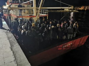 İzmir'in Urla ilçesi açıklarında, Sahil Güvenlik ekiplerince durdurulan balıkçı teknesi içerisindeki 125 sığınmacı ve 4 göçmen kaçakçısı şüphelisi yakalandı.