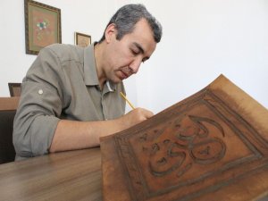 Uşak'ta din görevlisi Ahmet Mert, üniversite eğitimi sırasında öğrendiği hat sanatını deriye işliyor. Camilerin kapalı olmasından dolayı gününün büyük kısmını evinde kurduğu atölyesinde geçiren Mert, 100 yıllık sanatı yaşatmaya çalışıyor.