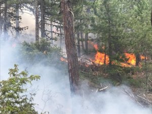 Uşak'ın Banaz ilçesinde 2 dekarlık ormanlık alanda etkili olan yangını söndürmek için havadan ve karadan müdahale ediliyor.
