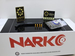 Operasyon, Uşak İl Emniyet Müdürlüğüne bağlı Narkotik Şube Müdürlüğü ekipleri tarafından yapıldı. Ekipler, uyuşturucu ticareti yaptıklarını tespit ettiği şahısları teknik ve fiziki takibe aldı. Takip sonucunda ekipler şüphelilere yönelik operasyon düzenledi. Şahıslara ait araç içinde yapılan aramada 500 gram esrar ve 1 adet ruhsatsız pompalı tüfek ele geçirildi. Araçta bulunan 2'si kadın 4 kişi gözaltına alınırken, şahıslar hakkında "uyuşturucu veya uyarıcı madde imal ve ticareti" suçundan işlem başlatıldı.