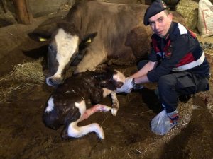 İneğinin doğum yapmasını sağlayan jandarma personeline teşekkür eden Tari, "Allah razı olsun devletimizden. Jandarmalara telefon ettim geldiler sağ olsun ineğin buzağısını doğurmasını sağladılar" dedi.
