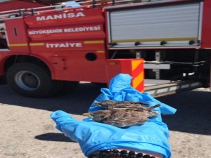 Manisa'nın Kula ilçesinde karayolu üzerindeki yön levhalarının asılı olduğu direkteki yuvadan karayoluna düşen yavru kuşlar, itfaiye ekiplerince kurtarıldı.