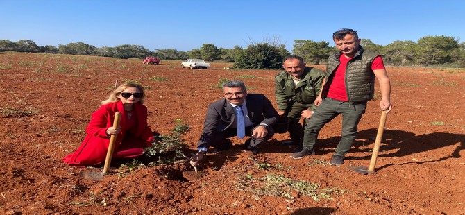 KKTC’de şuana kadar 8 dekar alanda 300 fidan toprakla buluştu. Devam eden çalışmalarda 30 dekarın üstünde alanda yaklaşık 2 bin sakız ağacı dikilmesi hedefleniyor.