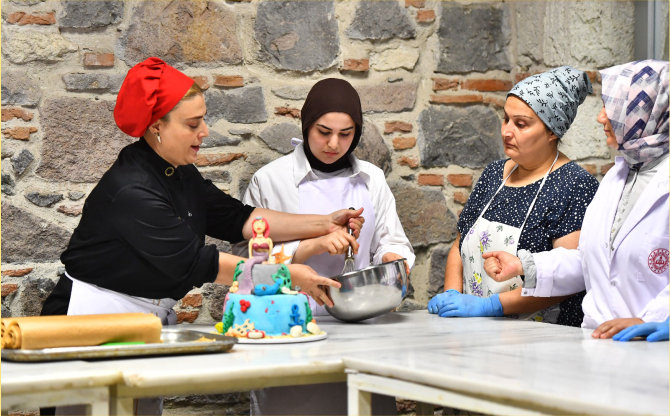 Meslek sahibi olarak sektöre adım atmak isteyen İzmirli yurttaşların adresi, yine İzmir Büyükşehir Belediyesi Meslek Fabrikası oldu. Ücretsiz başlatılan Pastacı Çıraklığı kursu ile mesleği A’dan Z’ye keşfeden kursiyerler, pastacılığın renkli dünyasında eğlenerek öğreniyor.