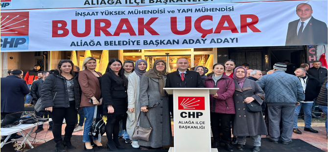 Aliağa Cumhuriyet Halk Partisi Belediye başkan aday adayı İnşaat Yüksek Mühendisi Burak Uçar aday adaylığını açıkladı. Parti ilçe binası önünde partililere ve vatandaşlara hitab eden Uçar neden aday adayı olduğunu anlattı.